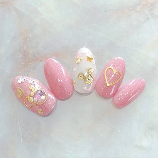 ディズニーネイル 美女と野獣 ピンク イエロー パール ネイリスト ネイル チップ Rkmn リ カマ ナ 所属 前川 奈未のネイル デザイン ミニモ